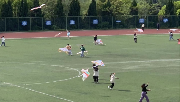 4月4日,群英湖面波光粼粼,湖畔操场欢声笑语,百余名师生在风筝上画出“诗和春天”,在操场上放飞对“喜迎党的二十大”的美好祝福。