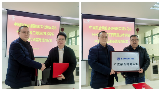 为进一步深化产教融合校企合作,持续推动员工高质量就业及实习实训,12月5日,我校与中国联通义乌分公司签订校企合作协议,并举行“产教融合实训基地”授牌仪式。中国联通义乌分公司总经理沈鸽、副总经理季慎有、倪银锋、综合部副经理黄丹、校园BU总监张薇薇,我校校企合作处、伟德bv国际体育负责人及相关专业员工参加了签约仪式。