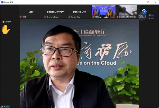 11月1日,由中华人民共和国商务部主办,浙江省自由贸易发展中心承办,我校伟德bv国际体育参与策划组织的发展中国家商品交易市场培育发展研修班顺利开班,浙江省自由贸易发展中心副主任王君英,发展中心培训部部长盛炎平出席了开班仪式,学校党委委员副院长何少庆和主讲老师在线参加仪式,埃塞俄比亚、肯尼亚、莱索托、纳米比亚、尼日利亚、塞拉利昂、斯里兰卡、赞比亚等国家的政府官员和企业代表49名学员参加了开班仪式并聆听课程。这已是我校第三次协办了发展中国家交流研修班。