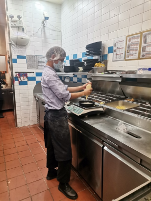 在这里实习的郑垒同学说,他已经学会了制作披萨和牛排,下一个阶段将学习做饮料。在工作之余,他会和同样在菲滋工作的同学相互交流工作心得。