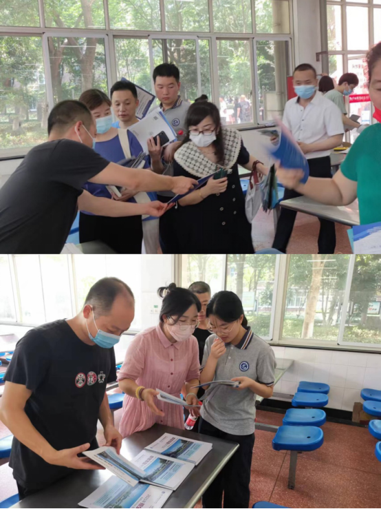 在招生宣传咨询会现场,会场上他们精心布置场地,耐心细致地一一解答问题,并就招生政策、志愿填报及我院今年的招生计划等与考生和家长进行交流,提供贴心指导与服务,帮助广大学子圆大学梦。
