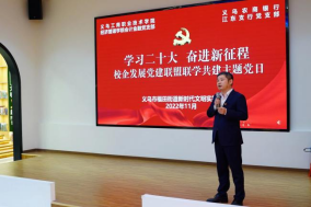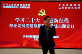 主题党日活动现场,与会人员共同观看了党的二十大精神学习视频。伟德bv国际体育相关负责人、义乌农商银行江东支行党支部书记围绕学习贯彻党的二十大主题上了一堂别开生面的党课。座谈会上,与会人员围绕学习宣传贯彻党的二十大精神,结合自身工作实际,谈认识、讲体会、话实践。双方一致认为,要不断加强党建与业务的深度融合,深化产教融合,推动党建共建优势转化为发展优势,党建共建资源转化为发展资源,党建共建成果转化为发展成果,推动校企合作高质量发展。