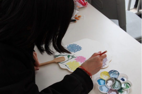 活动现场,有会书法的员工在扇子上写下端正的毛笔字,用语言传递着希望;也有会绘画的员工描绘出春日的景象,用颜色传达昂扬的春意;还有用卡通人物形象来表达自己想说的话。“青春才几年,疫情占三年”参加活动的员工说,“我们非常理解学校的防疫政策,多彩的校园活动也能丰富我们的校园生活,希望以后还能有这样的活动。”画完画的员工也纷纷拍照,将自己的作品发给家人、同学,给他们送上祝福。
