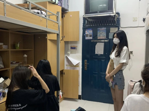 入夜,各班班主任以及班助走进新生的每一间寝室,亲切地问候同学们的开学感受,并介绍后续军训具体安排。
