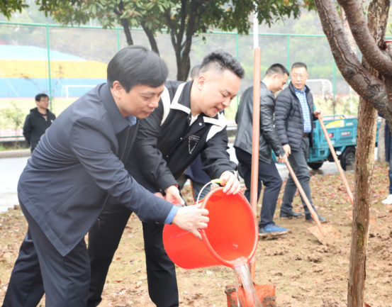 会后,徐江南还参加了在学校樱花林开展“春风十里,植樱有你”植树活动。与校领导、基金会全体成员共同栽下白樱花,献礼办学三十周年。